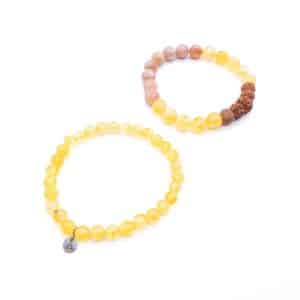 Citrín, sluneční kámen, rudraksha – 2 ks náramků