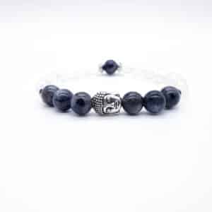 Larvikit, křišťál – buddha náramek