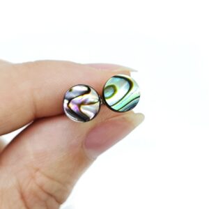 Pecičky vyrobeny z pravé abalonské mušle, která zaujme svou nádhernou hrou barev a přirozeným leskem. S průměrem 8 mm jsou jemné a decentní, ideální pro každodenní nošení i speciální příležitosti. Každý pár je jedinečný díky přirozeným vzorům mušle, která vytváří jedinečné odstíny modré, zelené a perleťové. Díky své lehkosti a komfortu jsou náušnice příjemné na nošení po celý den. Dokonalý doplněk pro milovnice přírodních materiálů a nadčasové elegance.