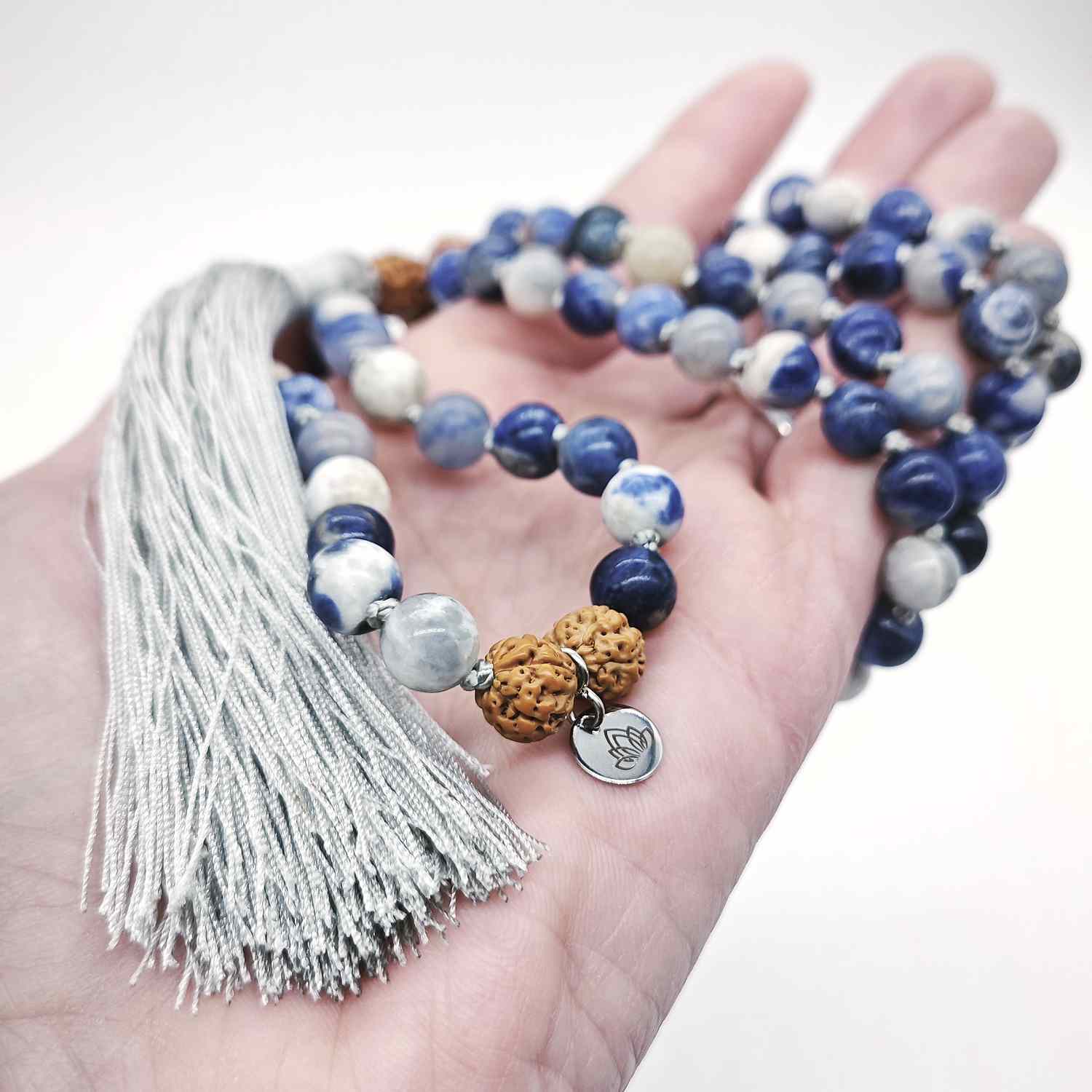 Náhrdelník Japa Mala se 108 korálky + 1 guru korálek a střapec.