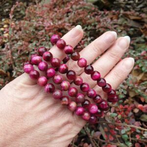Tygří oko magenta 8 mm – náramek