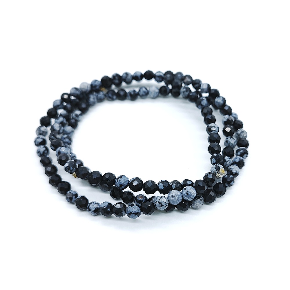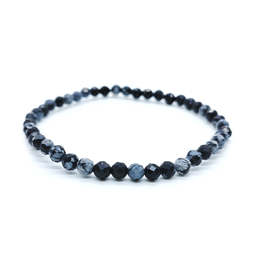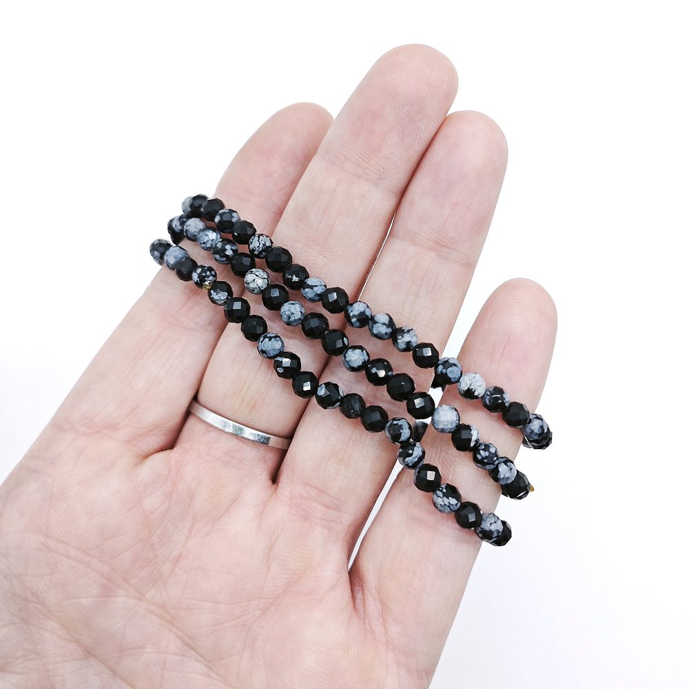 Vločkový obsidián fazetovaný 4 mm – náramek